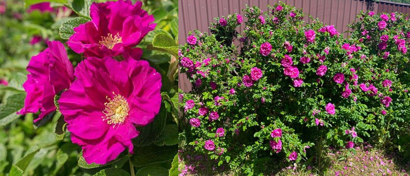 2. Rosa rugosa (Japanese Rose/Beach Rose - Hoa Hồng Nhật Bản/Hoa Hồng Bãi Biển): Có nguồn gốc từ vùng Đông Bắc Á (Nhật Bản, Hàn Quốc, Đông Bắc Trung Quốc, Đông Nam Siberia). Hoa màu hồng đậm hoặc trắng, đơn hoặc bán kép, cánh hoa nhăn nheo đặc trưng (rugosa có nghĩa là "nhăn nheo" trong tiếng Latin). Hương thơm nồng nàn, đinh hương. Cây bụi thấp, rậm rạp, rất khỏe mạnh, chịu được điều kiện khắc nghiệt, đất nghèo dinh dưỡng, gió biển, sương muối.