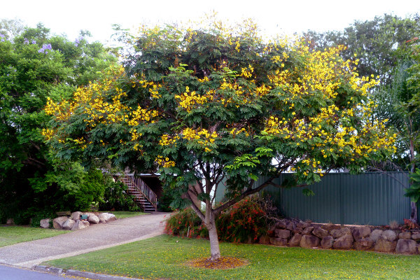Cây thuộc dạng cây gỗ lớn, cao trung bình 10-20m. Lá cây nhỏ, dạng kép lông chim, hoa nhỏ màu vàng thành từng chùm trên đầu cành. Cây nở hoa vào mùa hè, tạo nên một màu vàng rực rỡ cho đường phố, công viên, khuôn viên nhà bạn.