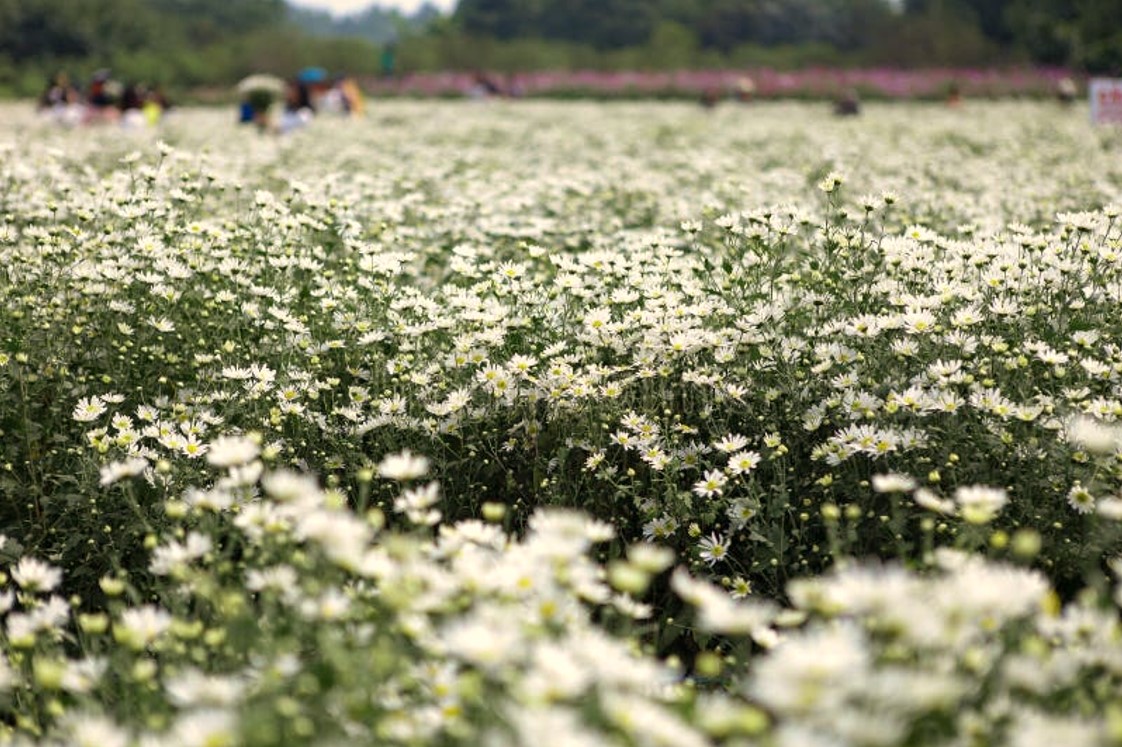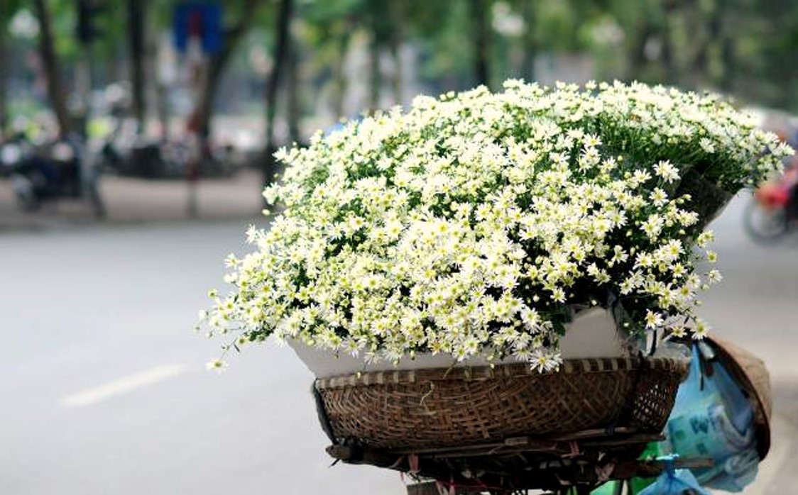 Trên những con phố, từng gánh hàng hoa len lỏi khắp ngõ nhỏ, chở đầy những đóa cúc trắng muốt, nhụy vàng rực rỡ, khiến lòng người bỗng chốc thấy bình yên lạ. Ở những vườn hoa Nhật Tân, Tây Tựu hay Mê Linh, cúc họa mi nở rợp một vùng trời, tạo nên bức tranh tuyệt đẹp, giản dị mà tinh khôi.