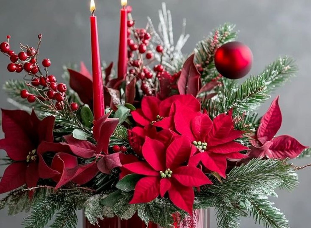 Một sự thật thú vị là những cánh hoa đỏ rực rỡ mà chúng ta nhìn thấy thực chất là lá bắc (lá non chuyển màu) còn hoa thực sự là những cụm nhỏ màu vàng nằm ở chính giữa các tán lá đỏ.