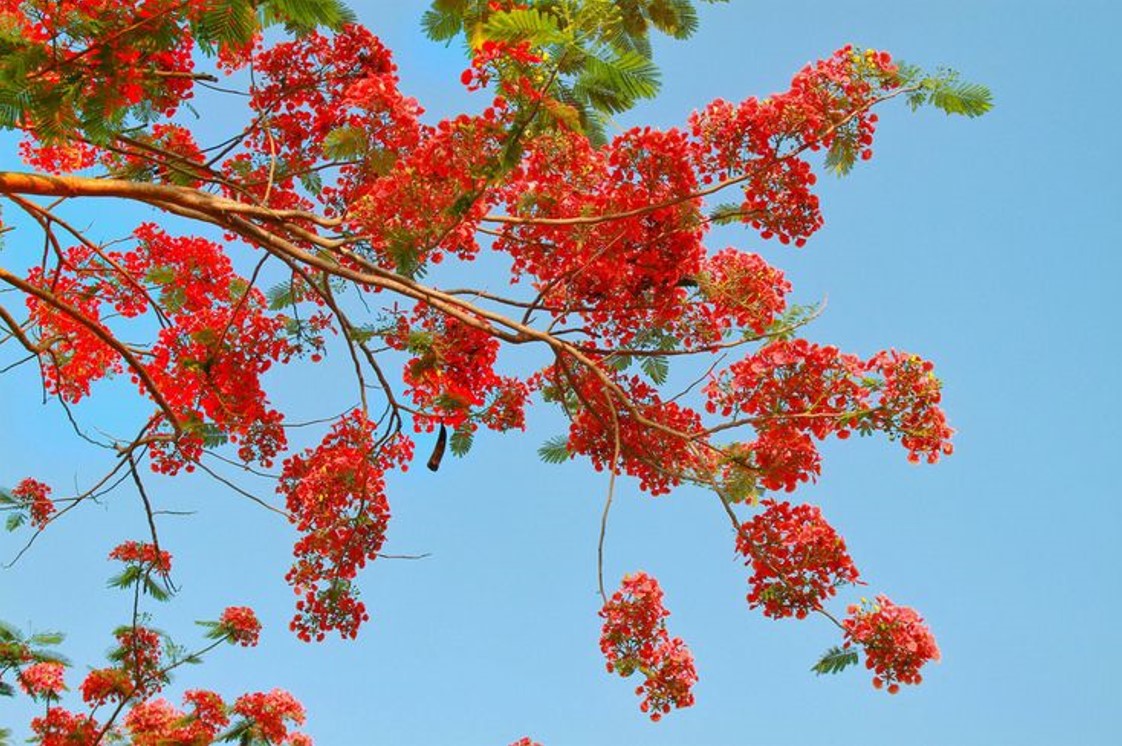 Hoa phượng mang sắc đỏ rất đặc trưng, vừa rực cháy, mãnh liệt, lại vừa mang nét bâng khuâng, lưu luyến. Khi những cánh phượng rơi xuống kết thành một thảm hoa đỏ dưới gốc cây càng làm tăng thêm vẻ đẹp và cảm xúc cho không gian.