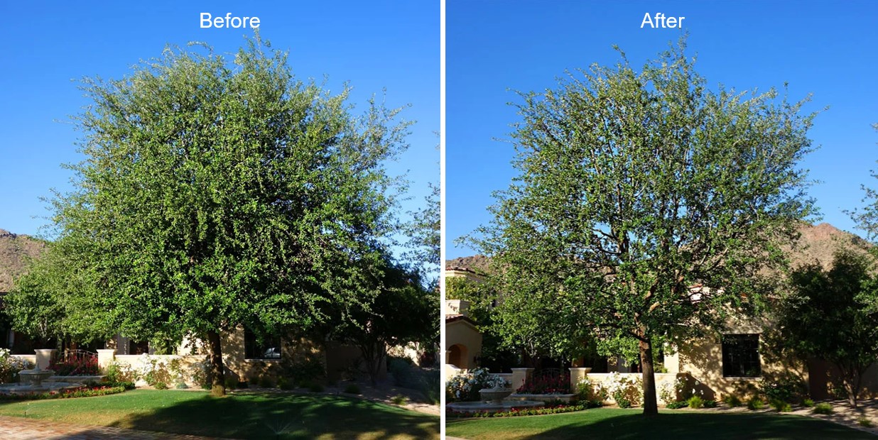 Nếu bạn đang đối mặt với một cái cây quá rậm rạp, hãy chia làm nhiều đợt cắt tỉa (mỗi đợt cách nhau vài tháng) thay vì cố gắng dọn dẹp tất cả trong một ngày. Điều này giúp cây không bị sốc vì mất đi nguồn năng lượng lớn dẫn đến việc cây kích hoạt hàng loạt các chồi ngủ, tạo ra số lượng lớn cành lớn nhanh nhưng rất yếu ớt, không có giá trị thẩm mỹ mà còn dễ bị cháy nắng và sâu bệnh xâm nhập.