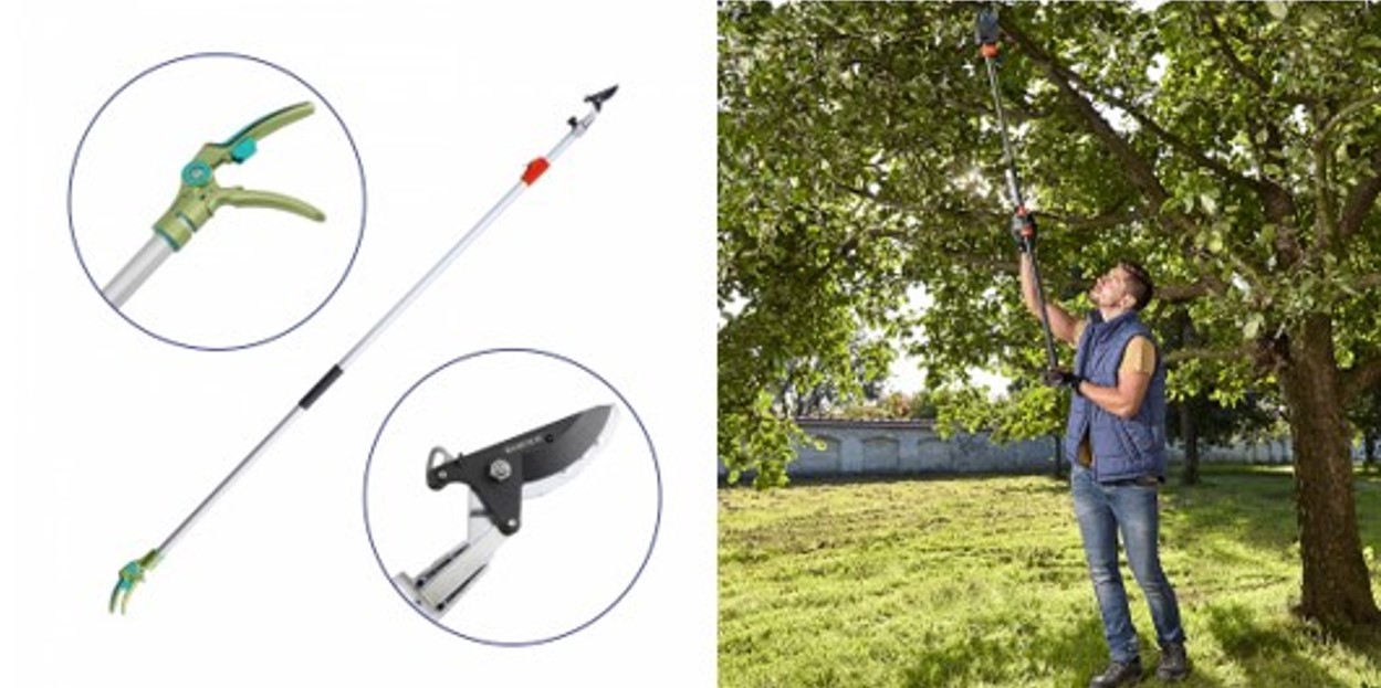 - Sử dụng kéo cắt cành trên cao có hệ thống dây kéo hoặc sào dài tích hợp cả lưỡi kéo hoặc lưỡi cưa cho các cành ở độ cao 3-5m mà không cần dùng thang.