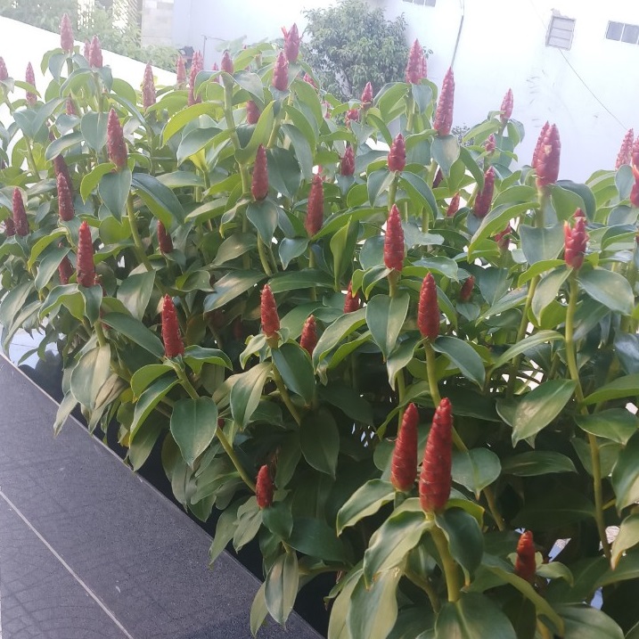 Cây dạng bụi nhỏ,thân cỏ cao khoảng 3m, đôi khi cây phân cành ở ngọn, gốc hóa gỗ. Lá có dạng trái xoan, màu xanh bóng, gân chính nổi rõ, thuôn dài, đầu nhọn, gốc thuôn có bẹ ôm thân, xếp thành hình xoắn ốc. Cụm hoa ở ngọn hình trụ dài 5 – 10cm, lá bắc màu đỏ đậm xếp dày cạnh nhau tựa như một cái nụ, hoa nở màu đỏ cam.